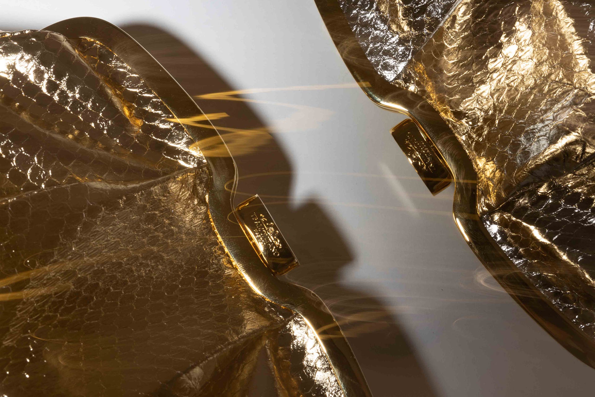 Cuciture “hand made”, intrecci di cuoio, chiusure e dettagli in ottone, applicazioni di pietre, accessori di corno e di bamboo sono i tratti distintivi delle creazioni Tramontano realizzate all’interno dell’azienda da abili mani artigiane.